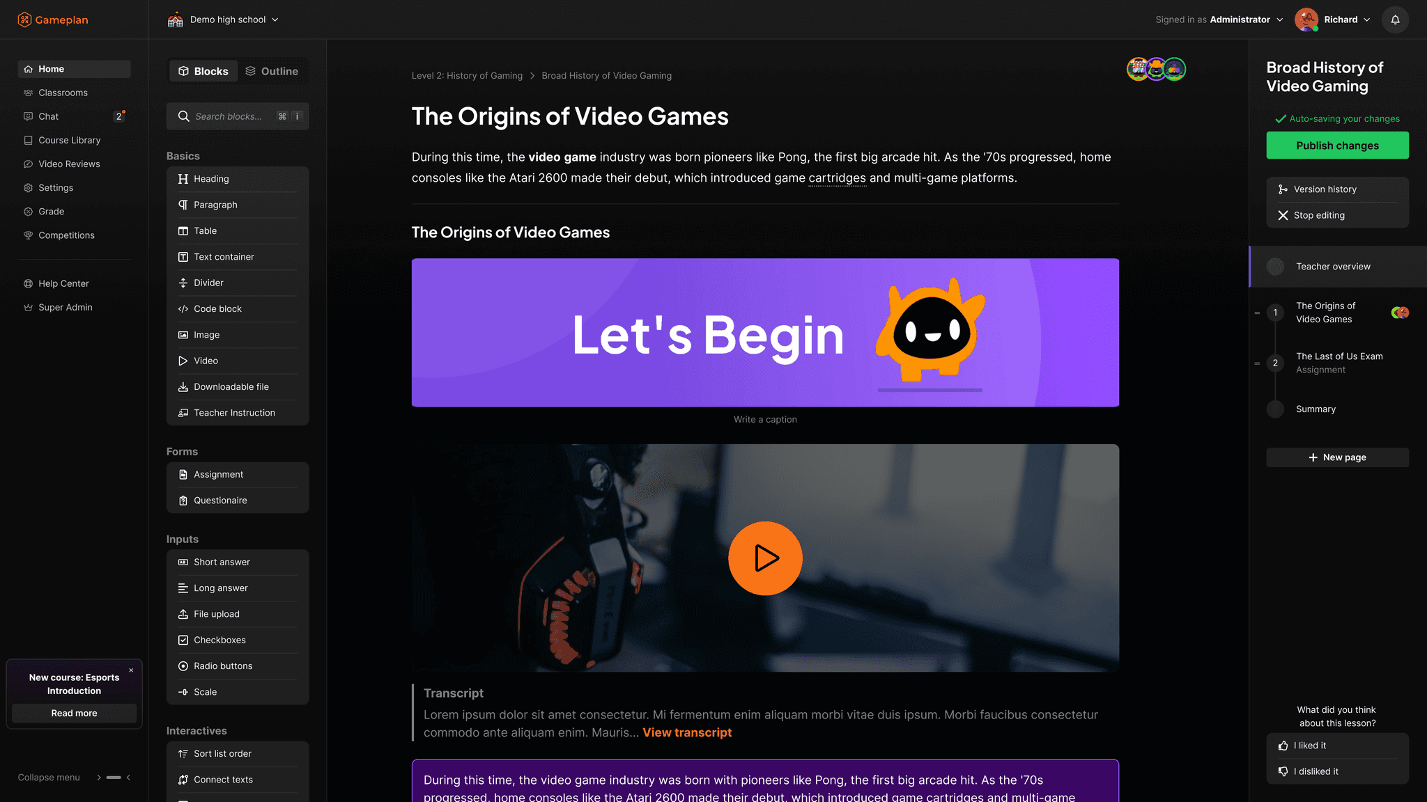 Schools everywhere face the same challenge - keeping students’ attention. Gameplan tries making learning fun by mixing exciting topics like game development with interactive, hands-on activities.